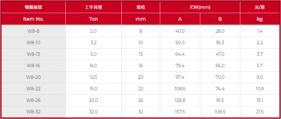 使用於各種80級合金鋼吊具配套
