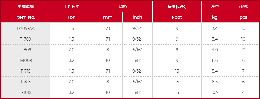 外觀:鍍彩鋅,每條均有附鋁標(biāo)牌,標(biāo)示安全荷重