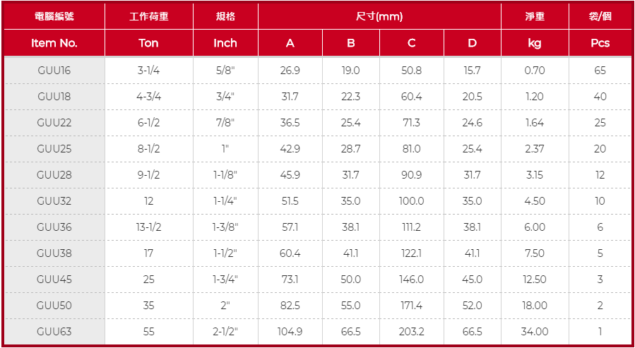 產品特性:適用於直、側吊裝起側吊、多負荷的吊裝系統,防止脫落用螺栓,螺母,開口銷加強安全保護載荷範圍:3-1/4Ton-55Ton本體材質:中碳鋼、鋅材質:碳鋼外觀:電鍍鋅安全係數:4:1